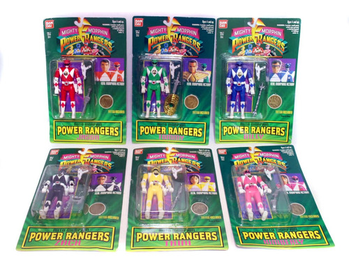 Coleção dos 6 Rangers fabricados pela Bandai nos anos 90, lacrados até hoje. Fotos reais do lote que será enviado.
