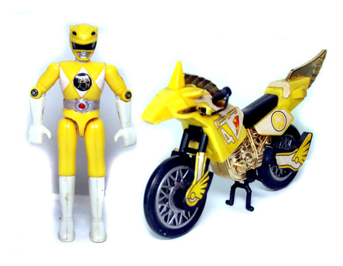 Boneco Power Rangers Amarela Com Moto Thunder Bike Bootleg