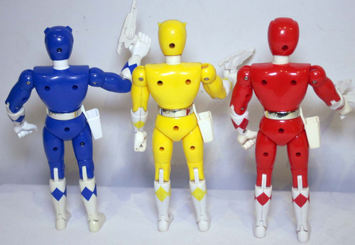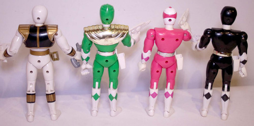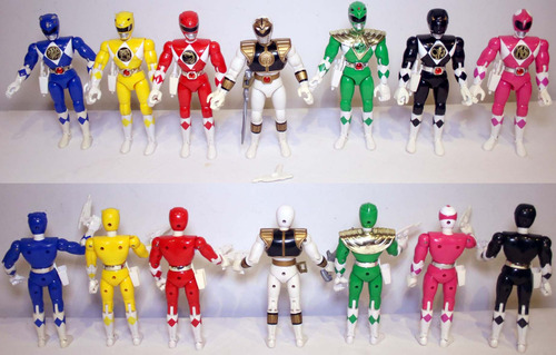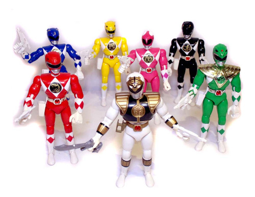 Coleção com os 7 bonecos de 20cm lançados em 1994, originais, fabricados pela Bandai, em excelente estado de conservação. Estão todos completos e o branco está mais do que completo, porque originalmente ele tinha somente a espada (não tinha pistola) e foi acrescentada uma pistola à ele. O colete do branco está com dois pininhos de encaixe quebrados. O colete do verde é a única coisa que não é original, retirado de boneco bootleg. Possuem alguns mínimos retoques de pintura. Esse lote foi formado pelos 7 melhores bonecos de dezenas e dezenas de bonecos dessa coleção que acumulei durante vários anos. Não são da linha com golpe de karatê.