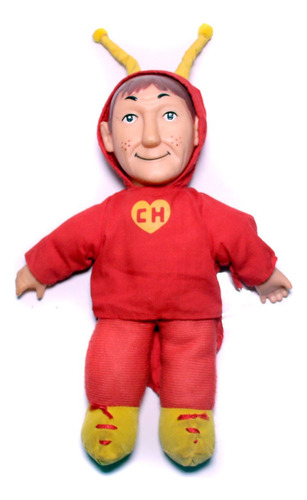 Boneco raro com cabeça de vinil e corpo de pano. Originalmente ele possuía um auto falante na barriga que fazia som, mas está sem. Não há informação de nome de fabricante.