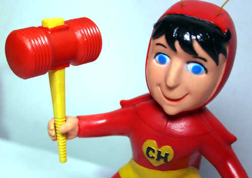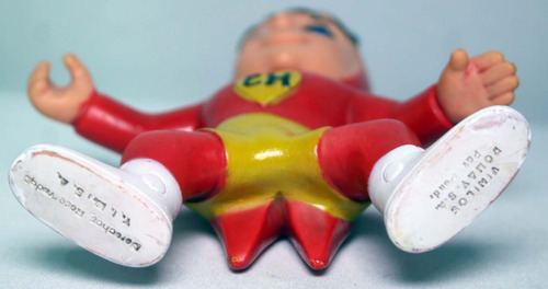 VERSÃO RARA DO CHAPOLIN MEXICANO DOS ANOS 70 DE 14,5CM DE ALTURA SEM CONTAR COM AS ANTENAS. PINTURA RETOCADA. ELE ORIGINALMENTE TINHA FURINHOS NA CABEÇA, MAS NÃO TINHA ANTENAS. FIZ ANTENAS COM ALFINETES QUE SE ENCAIXARAM NOS FURINHOS E ADICIONEI TAMBÉM MARRETA FEITA EM IMPRESSÃO 3D. NÃO É ARTICULADO E SE EQUILIBRA BEM DE PÉ.