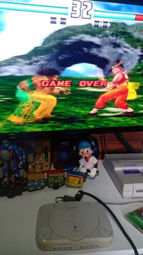 Console + fonte original. Funciona, mas fica dando umas pequenas engasgadas na execução dos jogos. Acredito que tneha que trocar o leitor. Cabo de imagem, controles e memory card não inclusos.